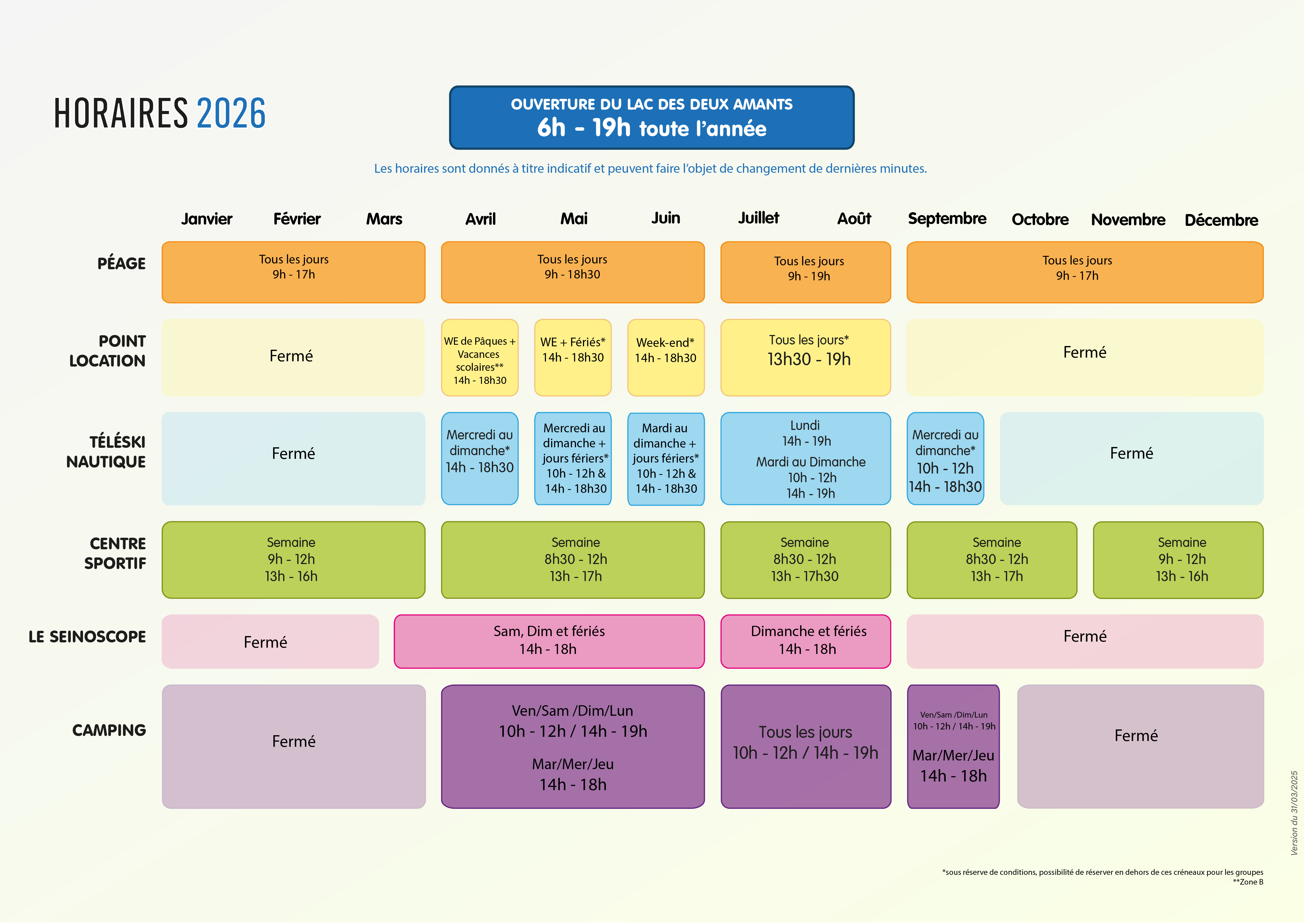 Le Lac des deux amants vous ouvre ses portes tous les jours de 6h à 19h